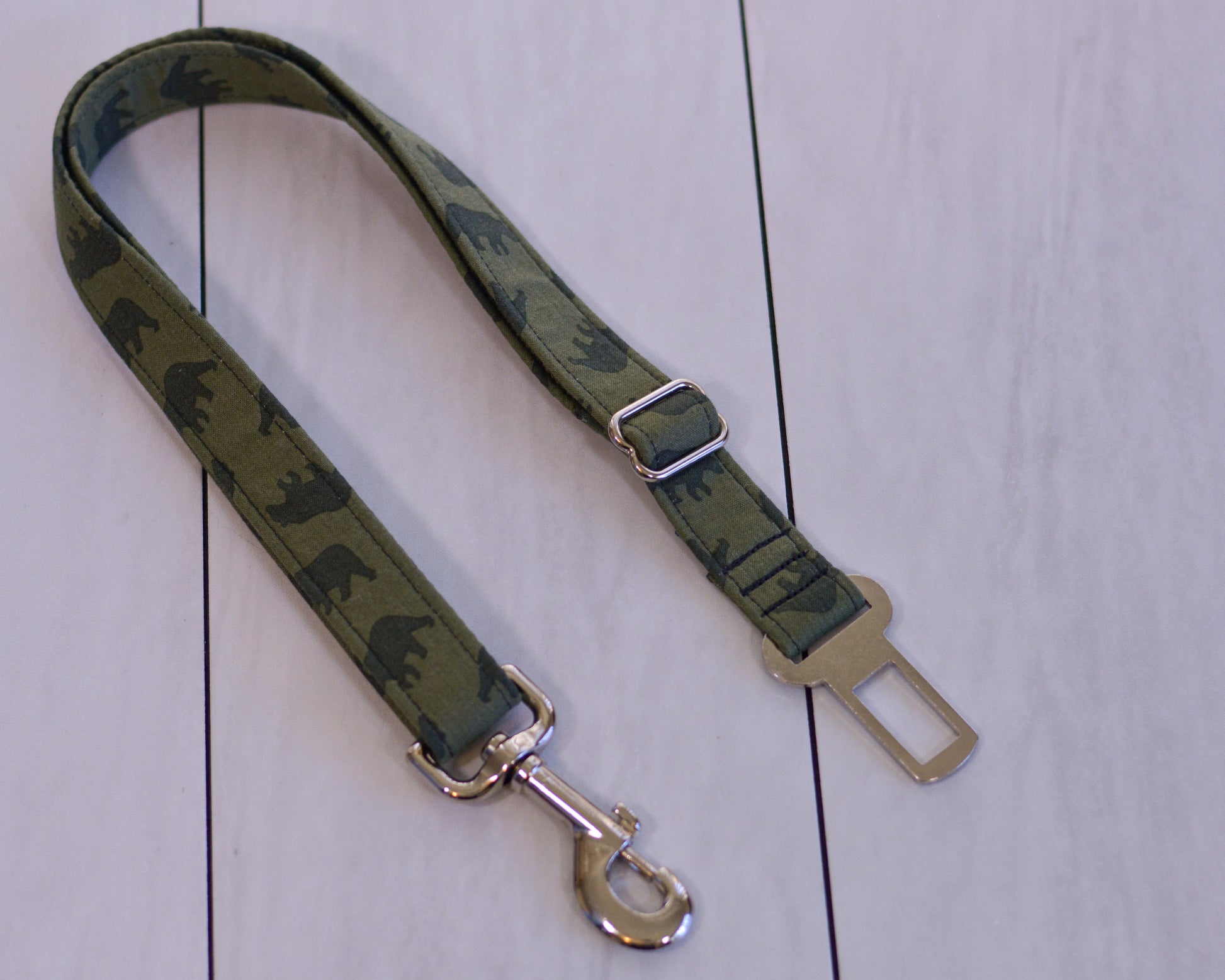 This listing is for a dog seatbelt attachment with your fabric choice (Choose from any of our many collar listings!). It is highly recommended to use this attachment with a harness and not a collar. All seatbelt attachments only come in 1" wide and silver hardware. Fits MOST vehicles. Does not work in Volvo vehicles.