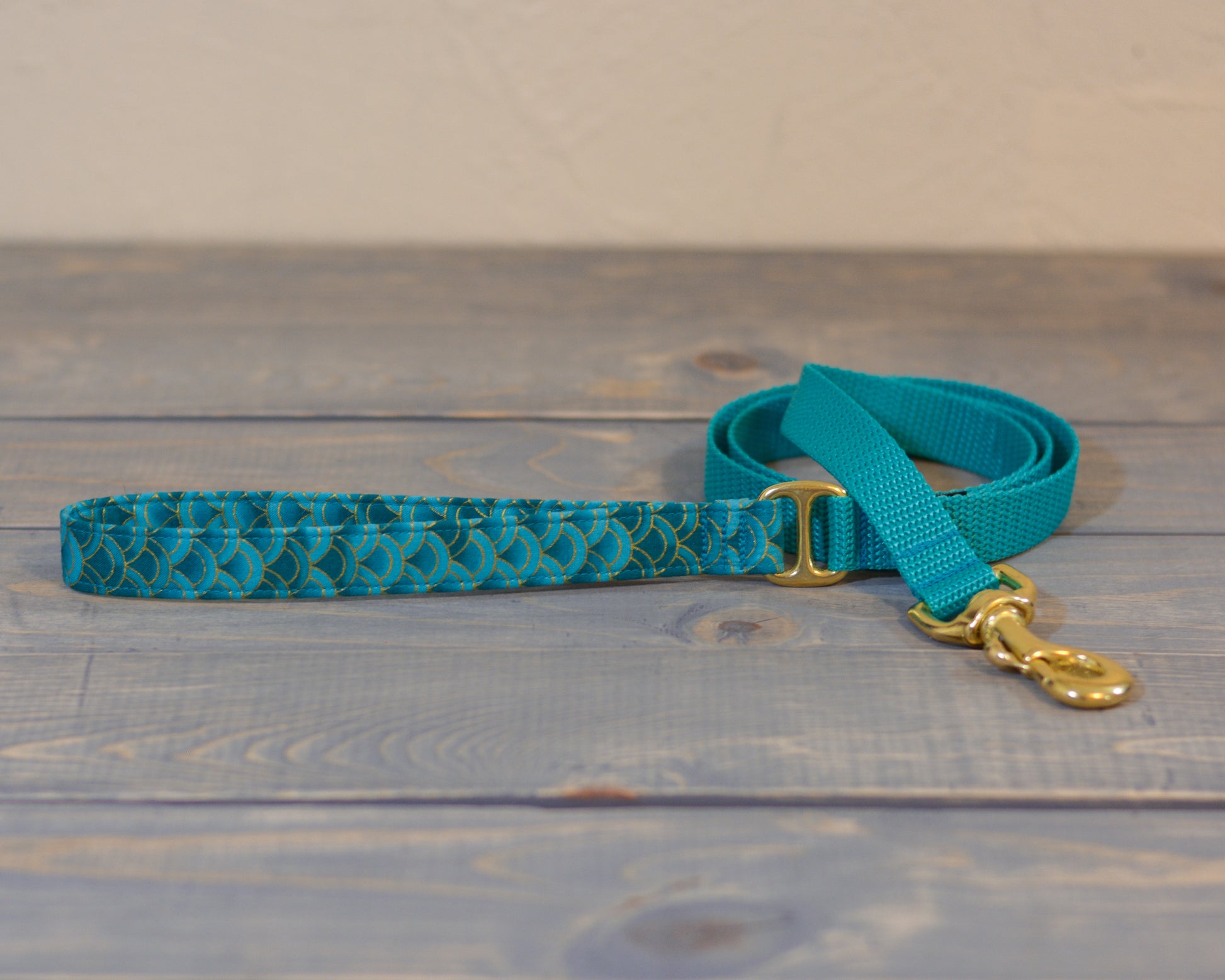 Custom made to your specifications! Choose your leash width (3/4" or 1" wide), your hardware (Silver or Brass), your leash length (up to 6 feet included, custom sizes available by custom order), your fabric (pick from any of our collar listings for our fabric selection), and your webbing color (see the color chart below, some photo examples are discontinued colors). The leash length is the entire length of the leash (including the handle). The handle is about an 8" loop.
