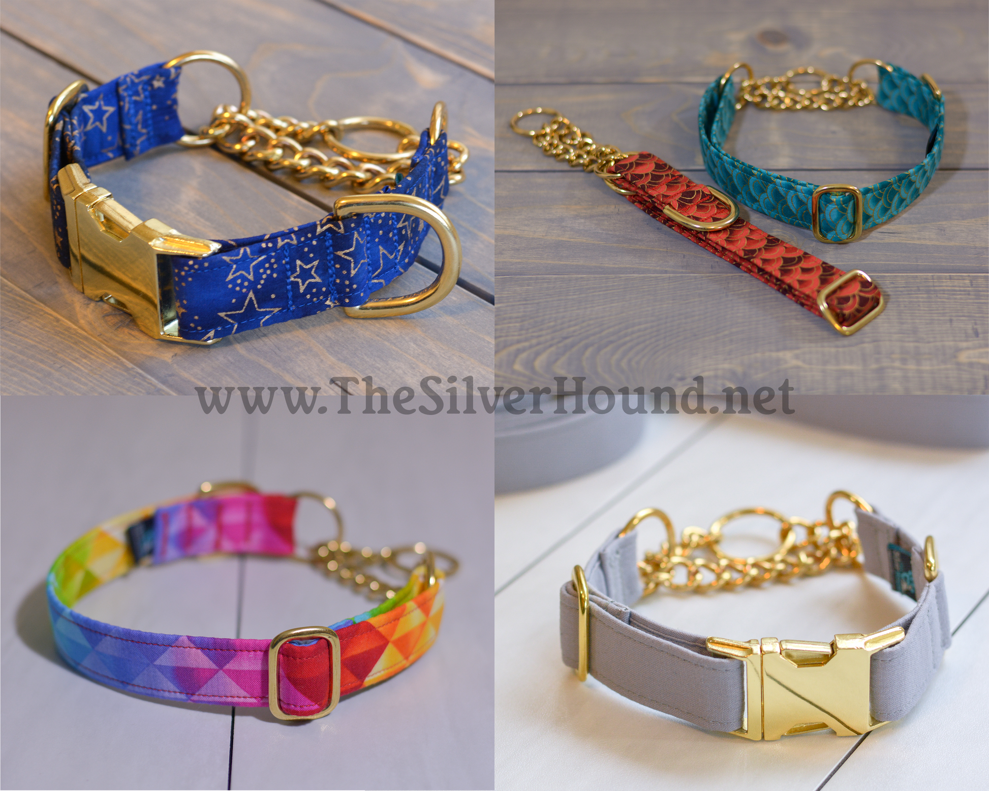 To read all about the different collar styles and hardware options, please check out our Collar Styles Info page by going to our menu OR follow this link here: www.thesilverhound.net/pages/collar-styles