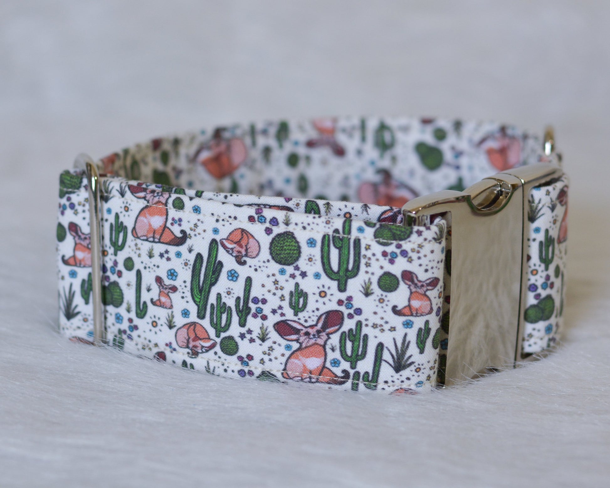 Collar Details: All of our collars are made with 100% cotton fabric (unless specified otherwise) that is then pre-washed and dried prior to construction. The fabric fully encases a polypropylene webbing which gives the collar it's strength. We stitch all our collars with dual duty polyester thread multiple times at all stress points. We've been making our collars this way since 2014.