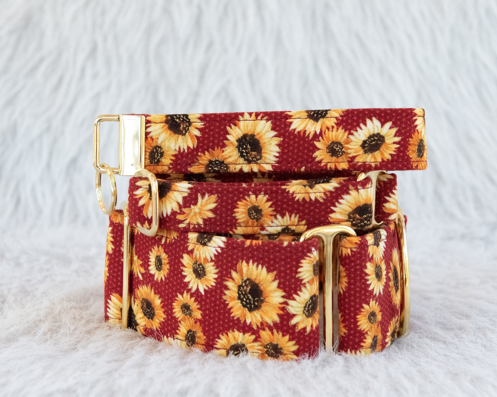 Fabric - sunflower sunflowers small flowers on dark red burgundy polka dot fabric with metallic gold accents
