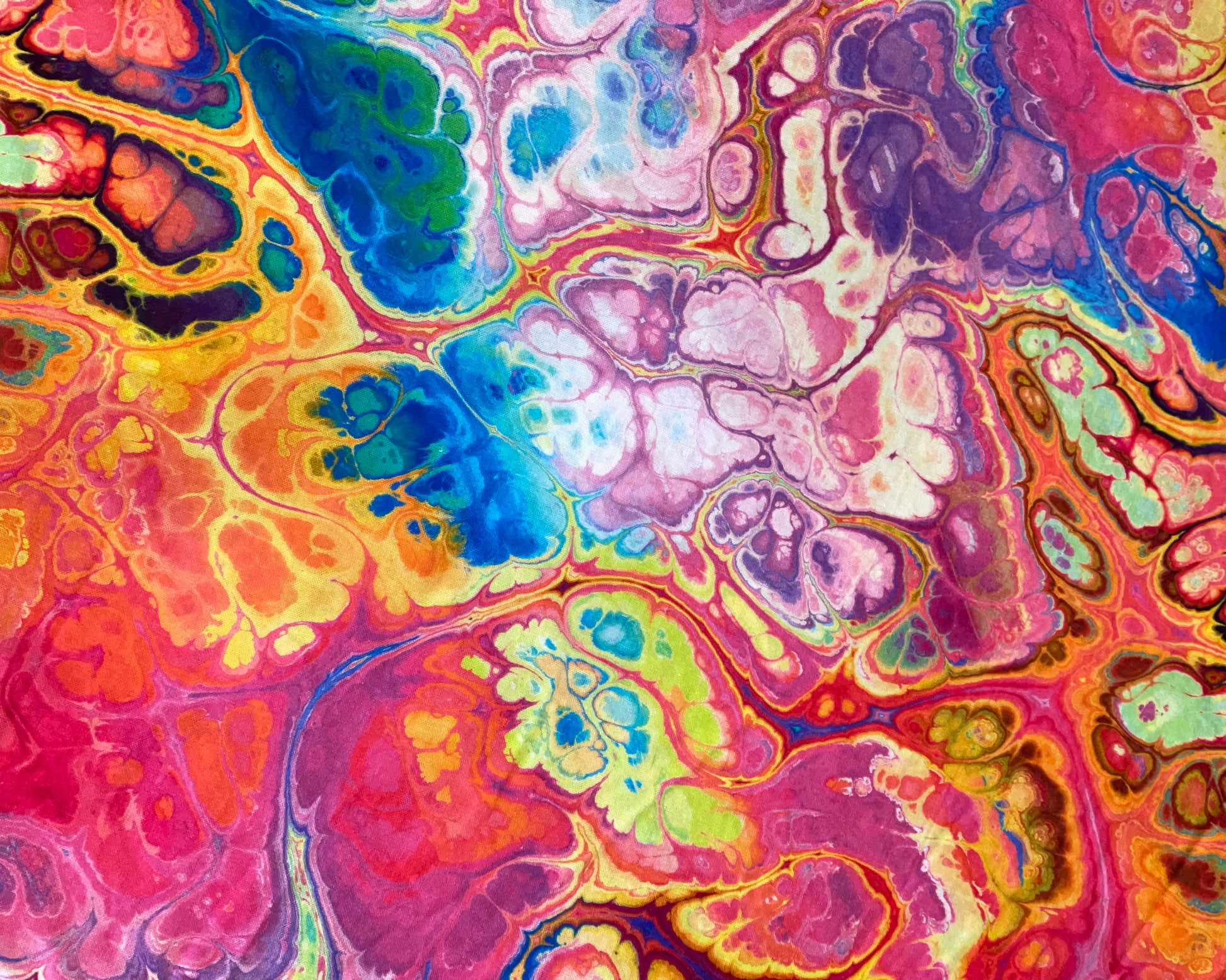 Fabric Description - Pink Purple Blue Orange - Multi color paint swirl marble *Please note due to the large varying pattern of this fabric your collar can and will likely vary from the example photos. If there is a specific color you have your heart set on please let me know when you order and I will do my best (no guarantees!) to get you that color on your collar.