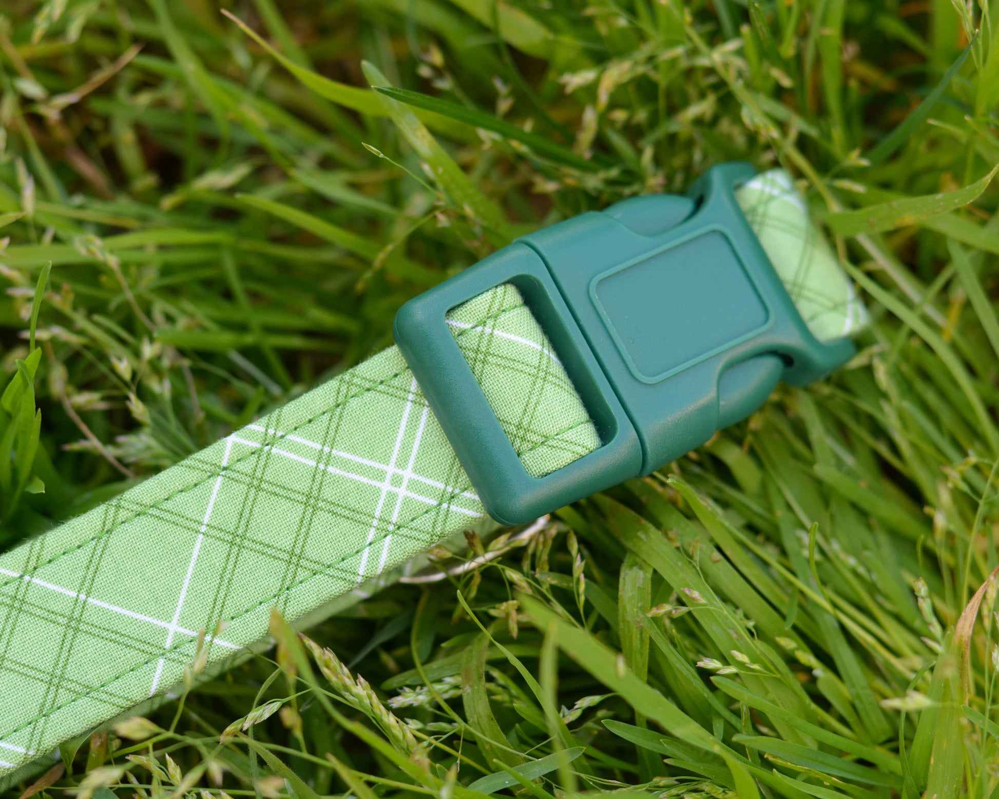Collar Details: All of our collars are made with 100% cotton fabric (unless specified otherwise) that is then pre-washed and dried prior to construction. The fabric fully encases a polypropylene webbing, which gives the collar its strength. We stitch all our collars with dual-duty polyester thread multiple times at all stress points. We've been making our collars this way since 2014.